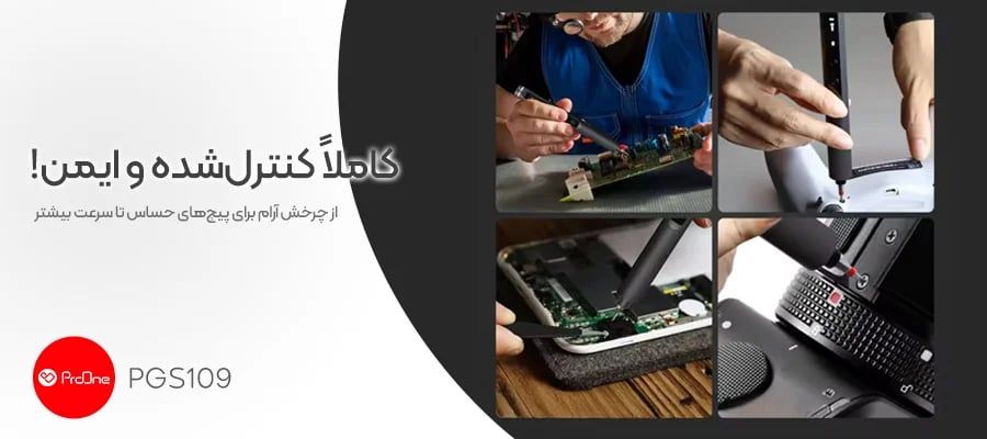 کیت پیچ گوشتی شارژی پرووان مدل PGS109 فقط یک ابزار نیست؛ یک سیستم هوشمند است. موتور داخلی آن امکان چرخش با 5 سرعت مختلف از چرخش آرام برای پیچ های حساس گرفته تا سرعت بیشتر برای باز و بسته کردن قطعات عمومی را فراهم می کند. قدرت این محصول طوری طراحی شده که برای کارهای ظریف مثل باز کردن قاب گوشی یا تعمیر برد الکترونیکی، کاملاً کنترل شده و ایمن عمل کند؛ بدون اینکه به پیچ یا دستگاه آسیبی برسد. در نهایت این محصول برای کسانی ساخته شده که به دقت، نظم و کیفیت اهمیت می دهند. چه یک تعمیرکار حرفه ای باشید، چه کسی که گاهی در خانه سراغ تعمیر وسایل دیجیتال می رود، این ابزار می تواند همراه مطمئن و کارآمد شما باشد.