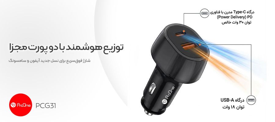 شاید برای شما هم پیش آمده باشد که دقیقاً در حساس ترین لحظات رانندگی، وقتی مسیریاب روشن است یا منتظر تماس مهمی هستید، با هشدار Low Battery تلفن همراه تان مواجه شوید. در این شرایط، پورت های شارژ اصلی خودرو معمولاً کندتر از آن هستند که بتوانند درصد باتری را به شکل موثری افزایش دهند. اینجاست که نیاز به گجت های هوشمند خودرو احساس می شود. شارژر فندکی فست شارژ 48 وات پرووان مدل PCG31 دقیقاً برای پاسخ به همین نیاز طراحی شده است؛ محصولی که با توان مجموع 48 وات، تکنولوژی Power Delivery (PD) و از همه مهم تر، یک کابل تایپ سی 60 واتی که درون جعبه خود دارد، خودروی شما را به یک ایستگاه شارژ فوق سریع تبدیل می کند. اگر فروشنده هستید و قصد خرید عمده لوازم جانبی موبایل برای فروشگاه خود را دارید؛ این محصول بهترین شارژر فندکی برای گوشی سامسونگ، شیائومی و آخرین سری های آیفون می باشد که تاکنون انتخاب کرده اید. مهمترین مزیت شارژر فندکی خودرو پرووان مدل PCG31، سازگاری بالا این مدل با انواع گوشی های هوشمند است. اگر می خواهید بدانید این شارژر فندکی ماشین کوچک 22 گرمی چطور دغدغه شارژ را در سفرهای شهری و جاده ای برای همیشه حل می کند، در ادامه با ما همراه باشید.