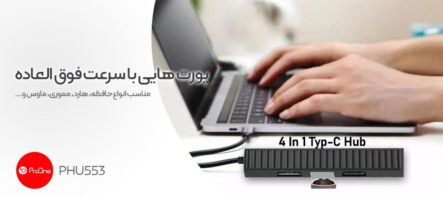 آیا به دنبال راهی برای افزایش تعداد پورت های دستگاه خود و اتصال لوازم جانبی بیشتر به آن هستید؟ هاب 4 پورت تایپ سی پرووان مدل PHU553 را به شما معرفی می کنیم! این هاب کوچک و کاربردی، با 4 پورت مجزا، به شما این امکان را می دهد که به طور همزمان چندین دستگاه را به لپ تاپ، گوشی یا تبلت خود متصل کنید.