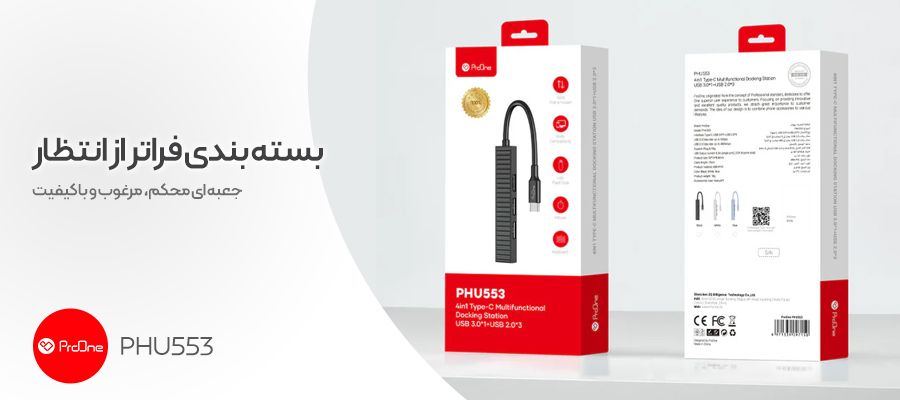 علاوه بر این موارد، هاب 4 پورت تایپ سی پرووان مدل PHU553 از رنگ مشکی و سفید جذاب و شیکی برخوردار است که به زیبایی هر چه تمام تر با میز کار شما هماهنگ می شود. در مجموع، هاب 4 پورت تایپ سی پرووان مدل PHU553 از نظر بسته بندی، مشخصات ظاهری و کیفیت ساخت در سطح بالایی قرار دارد و می تواند انتخابی ایده آل برای کاربرانی باشد که به دنبال یک هاب باکیفیت و خوش ساخت هستند.