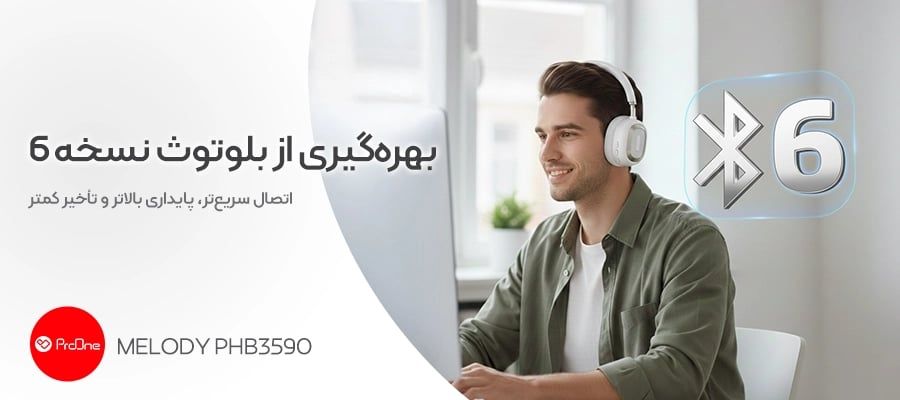 در بخش فنی، هدست بی سیم بلوتوثی پرووان مدل ProOne Melody PHB3590 با رویکردی متفاوت طراحی شده است. کیفیت صدا در این مدل صرفاً به بلندی محدود نمی شود، بلکه تمرکز اصلی بر شفافیت و کنترل فرکانس ها قرار دارد. چیپست پردازشی JL در این هدفون وظیفه ی مدیریت دقیق فرکانس های بالا، میانی و بم را بر عهده دارد و باعث می شود صدا بدون فشردگی و اعوجاج به گوش برسد. در نتیجه هنگام گوش دادن به موسیقی، صدای خواننده واضح باقی می ماند و جزئیات سازها در پس زمینه گم نمی شوند. بیس نیز با عمق مناسب و بدون ضربه ی مصنوعی پخش می شود تا تعادل صوتی حفظ شود.در استفاده ی روزمره، این پردازش دقیق به ویژه هنگام شنیدن پادکست ها، کلاس های آنلاین یا تماس های طولانی، باعث می شود گوش دیرتر خسته شود و صدا طبیعی تر شنیده شود.برگ برنده ی دیگر این مدل، بهره گیری از بلوتوث نسخه ی6.0 است. این نسل جدید بلوتوث اتصال سریع تر، پایداری بالاتر و تأخیر کمتر را فراهم می کند؛ موضوعی که هنگام تماشای ویدئو، بازی یا مکالمه های آنلاین به وضوح قابل لمس است. در کنار اتصال بی سیم، امکان پخش موسیقی از طریق کارت حافظه TF ، رادیو FM و استفاده ی باسیم از طریق درگاه AUX نیز فراهم شده است تا در هر شرایطی، دسترسی به صدا بدون وقفه ادامه پیدا کند.