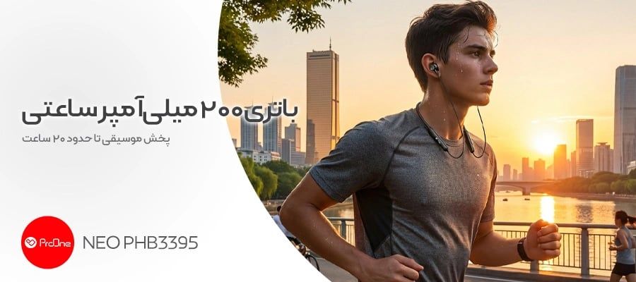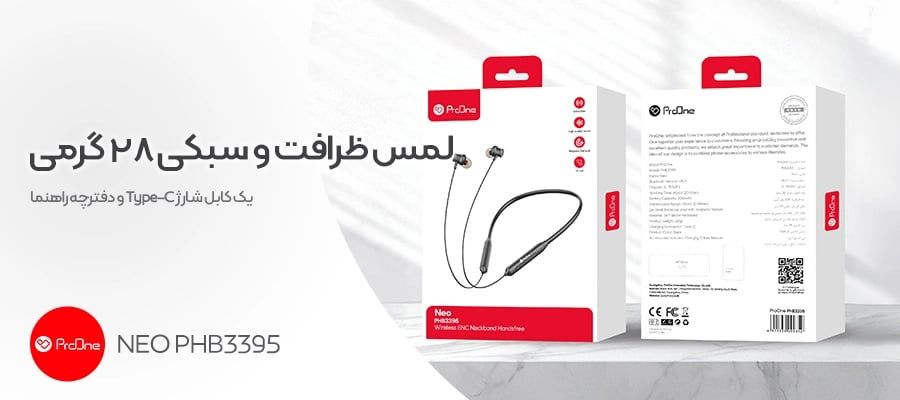 هندزفری بلوتوثی گردنی پرووان مدل ProOne Neo PHB3395 برای استفاده ی روزمره طراحی شده است؛ جایی که راحتی، وزن کم و اتصال پایدار اهمیت دارد. وزن 28 گرمی، بدنه ی منعطف سیلیکونی و بلوتوث نسخه ی 6.0 امکان استفاده ی طولانی مدت را فراهم می کند و فناوری ENC نیز مکالمه ای شفاف تر در محیط های شلوغ ارائه می دهد. اگر به دنبال هندزفری ای هستید که بدون ایجاد فشار اضافه، کیفیت تماس و موسیقی را در طول روز حفظ کند، Neo PHB3395 همان انتخابی است که در استفاده ی واقعی معنا پیدا می کند.