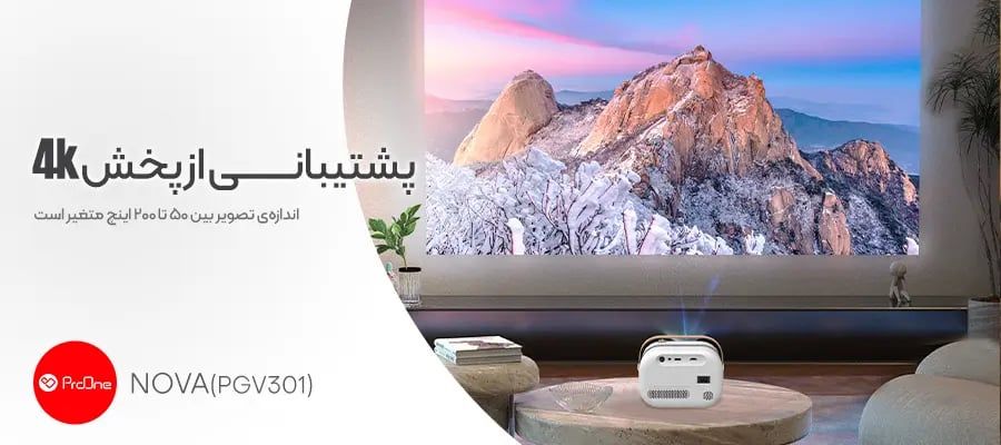 گاهی بهترین صحنه های زندگی نه در سالن سینما، بلکه در آرامش خانه یا دل طبیعت رقم می خورند. تصور کنید نور کم است، بخار فنجان چای بالا می رود و تصویر بزرگ یک ویدئو پروژکتور خانگی 4K روی دیوار روشن می شود. شاید فیلمی را با کسی که دوستش دارید تماشا می کنید، یا در شبی تاریک و آرام، زیر آسمان پرستاره، ویدئو پروژکتور خانگی هوشمند پرووان مدل PGV301 Nova را روی یک پرده ی قابل حمل روشن کرده اید تا تصویر در دل طبیعت جان بگیرد. این همان جایی است که خرید ویدیو پروژکتور مدل ProOne Nova PGV301 معنا پیدا می کند؛ دستگاهی با وضوح Full HD، پشتیبانی از پخش 4k و صدای استریوی دوگانه ی 5 واتی که سینمای واقعی را از سالن های عمومی به خانه و سفر می آورد.