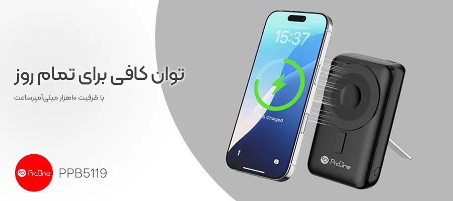 اگر از آن دسته افرادی هستید که روزتان میان تماس ها، رانندگی، و جابه جایی های مداوم می گذرد، پاوربانک ProOne مدل PPB5119 دقیقاً همان گجتی ست که باید در کیف یا خودرویتان باشد. ترکیب شارژ مغناطیسی، خروجی مخصوص اپل واچ، پایه ی نگهدارنده، و کابل های همراه، آن را به محصولی فراتر از یک پاوربانک ساده تبدیل کرده است